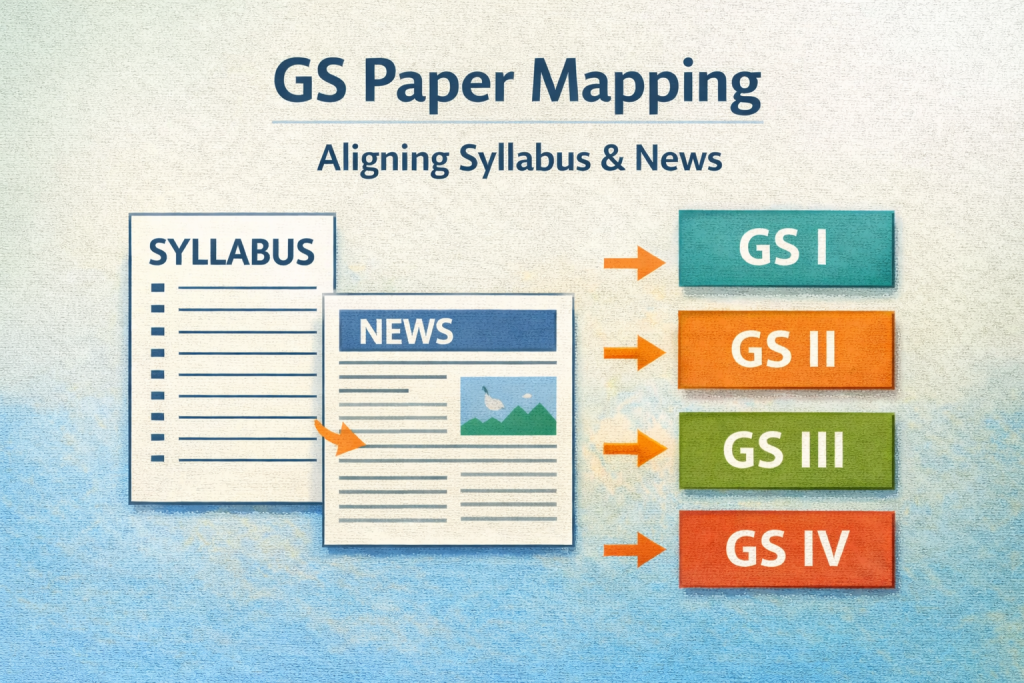 Articles are mapped conceptually to GS papers, themes, or subject areas, helping aspirants integrate current affairs with static preparation. This improves answer structuring, conceptual clarity, and revision efficiency.