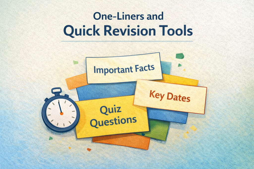 These cover constitutional facts, economic definitions, defence systems, environmental data points, and important government initiatives. Content is structured to help aspirants revise in minutes without losing accuracy.